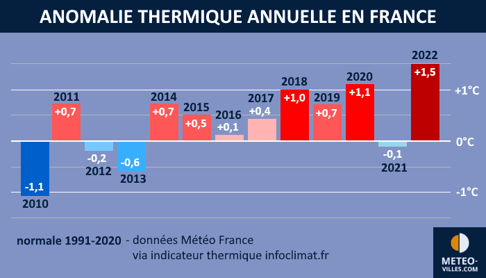 Anomalie thermique annuelle en France de 2010 à 2022 – Météo Villes