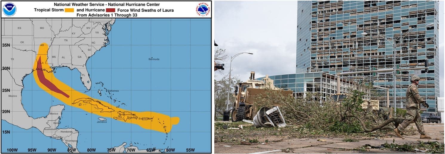 Représentation cartographique des deux ouragans puissants ayant frappé la Louisiane depuis fin août 2020 - Danielle Miller - News 19 WLTX