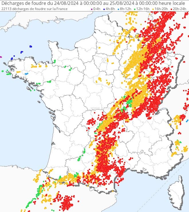 Carte de foudroiement en France ce samedi 24 août 2024 - Keraunos