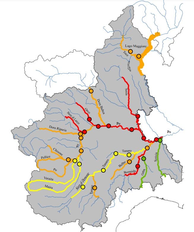 Avec de tels cumuls, nombreuses ont donc été les cours d'eau ayant débordé durant la journée du 17 avril sur le Nord-Ouest de l'Italie. Dans le Piémont, la majorité des cours d'eau ont ainsi été placés en alerte dès le matin, certains en alerte maximale en raison d'une montée rapide des eaux.