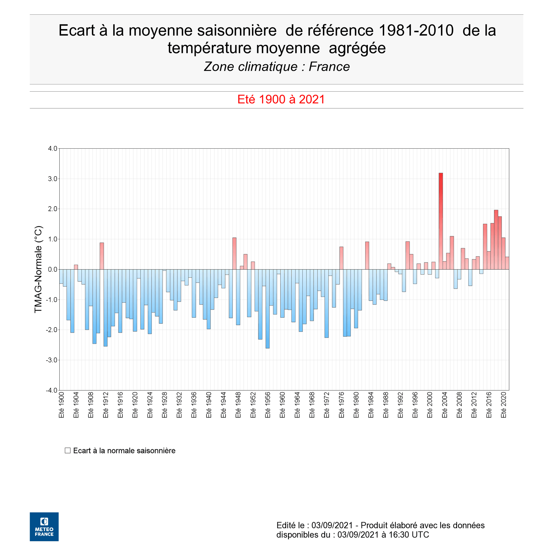 En effet, au regard de la moyenne 1981-2010 (période de référence), le bilan fait état d'une anomalie positive de +0.5°C.