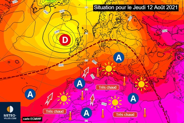 Situation à échelle continentale pour le jeudi 12 août 2021 - via ECMWF