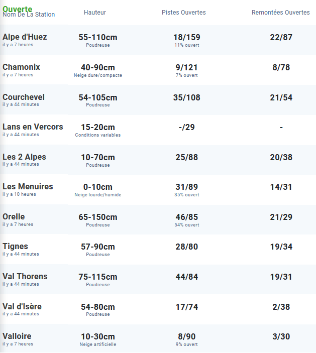 Ainsi, dans les stations ouvertes des Alpes du Nord, nous retrouvons un domaine ouvert entre le tiers et la moitié en général entre les stations de basse et de haute altitude.