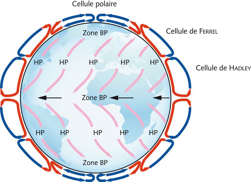 Schéma de la circulation atmosphérique générale dans le monde - via Encyclopédie de l’environnement
