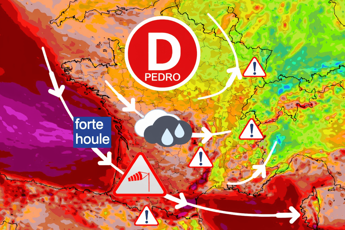 Outre les vents parfois forts, il conviendra également de surveiller le risque de nouvelles fortes précipitations au passage de cette dépression sur notre pays. En effet, entre les pluies parfois abondantes de ce lundi, surtout sur le sud et l'est de la France et le passage de la dépression PEDRO, les cumuls de précipitations s'annoncent de nouveau très importants entre mardi midi et jeudi soir, y compris dans le bassin de la Seine et de la Loire.