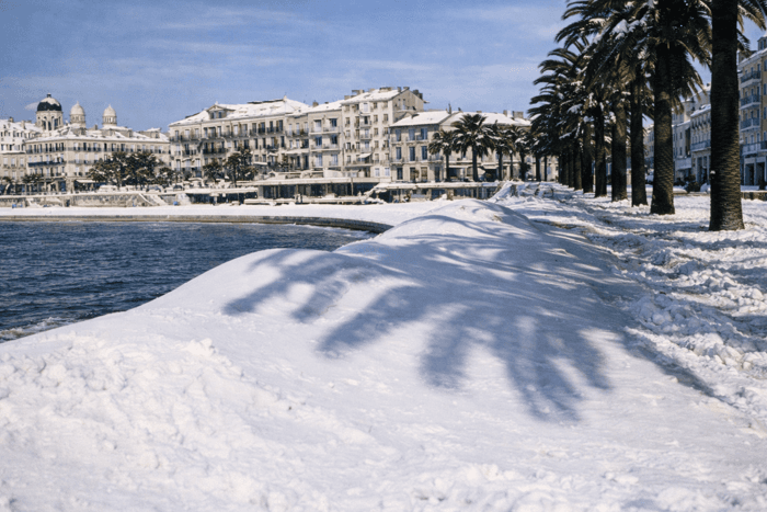 Cette tempête de neige touche également la côte d'Azur. Il s'agit d'un épisode neigeux de référence pour la région, tant les quantités de neige sont remarquables. Il tombe 23 cm de neige à Cannes et entre 40 et 70 cm dans le département du Var, jusqu'au littoral ! Les secteurs de Saint-Raphaël ou de Saint-Tropez se retrouvent ensevelis sous un épais manteau blanc, rendant la circulation très difficile durant plusieurs jours.