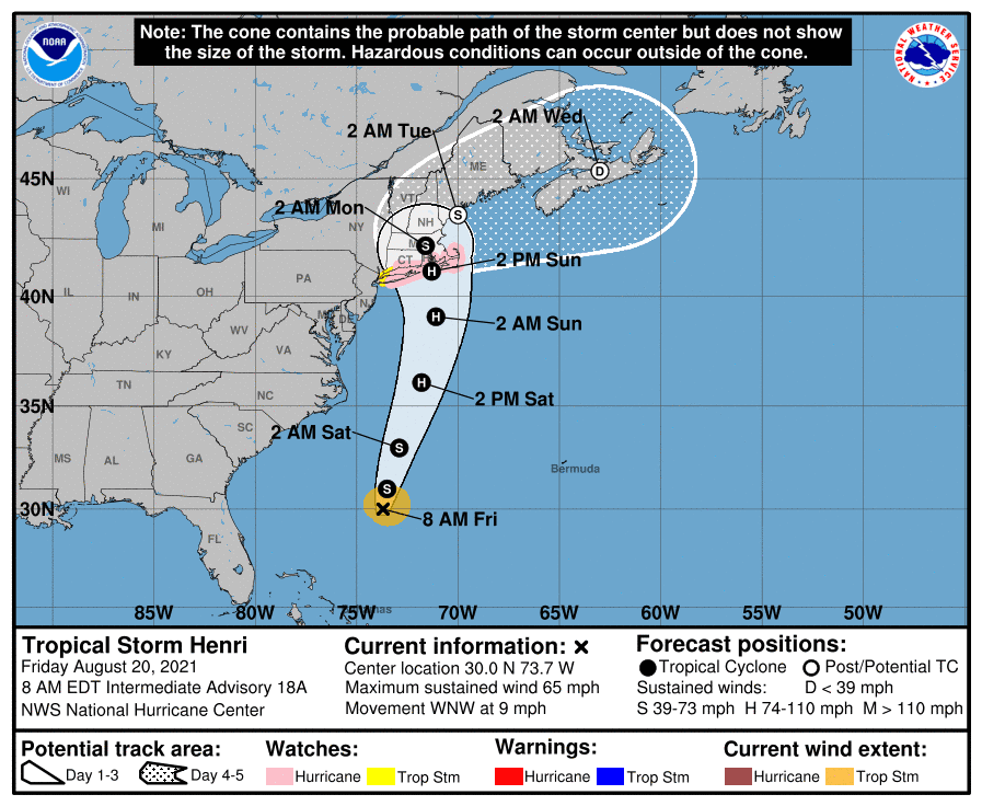 Trajectoire prévue de la tempête Henri dans les prochains jours – nhc.noaa.gov