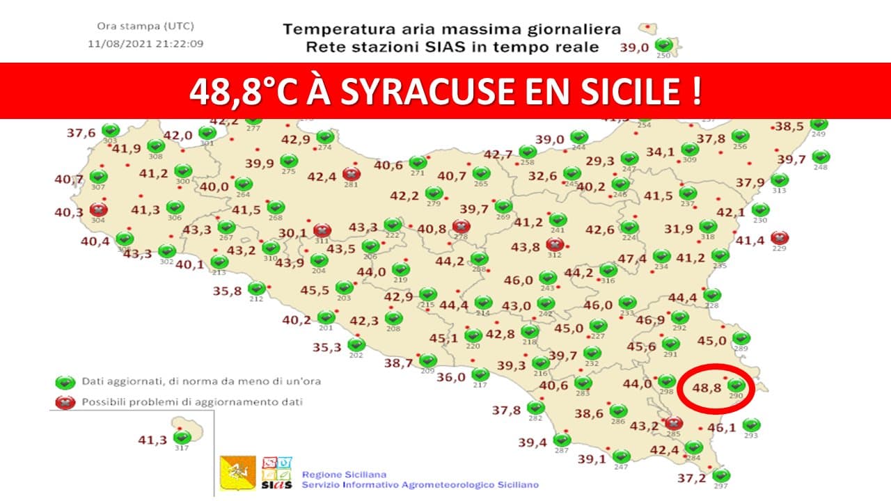 Nouveau record de chaleur pour le continent européen en Sicile le 11 août 2021 – Via SIAS