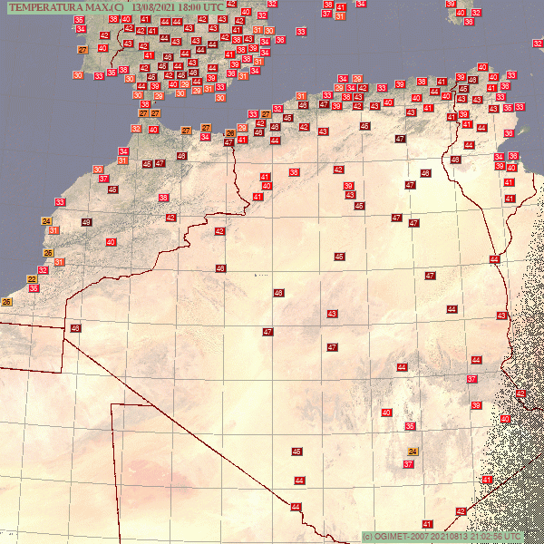 Températures maximales relevés le 13 août 2021 sur le Nord de l'Afrique – OGIMET