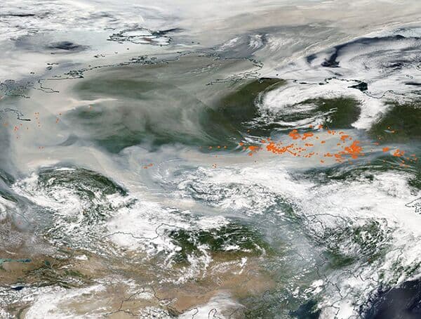 Fumée engendrée par les incendies concernant la Sibérie ces dernières semaines – NASA