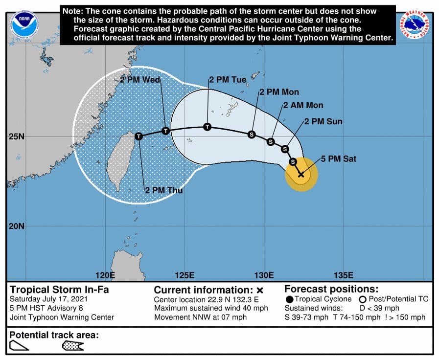 Trajectoire prévue de la tempête In-Fa dans les prochains jours – NOAA
