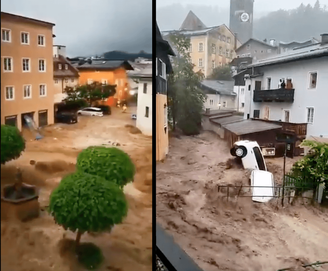 Importantes inondations sur la commune d'Hallein en Autriche entre le 17 et le 18 juillet 2021 – AFP