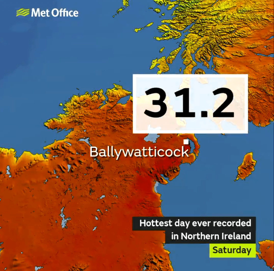 Record de température en Irlande du Nord ce samedi 17 juillet 2021 – Met-Office