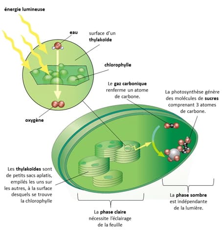 Schéma de la photosynthèse et du rôle clé de la chlorophylle