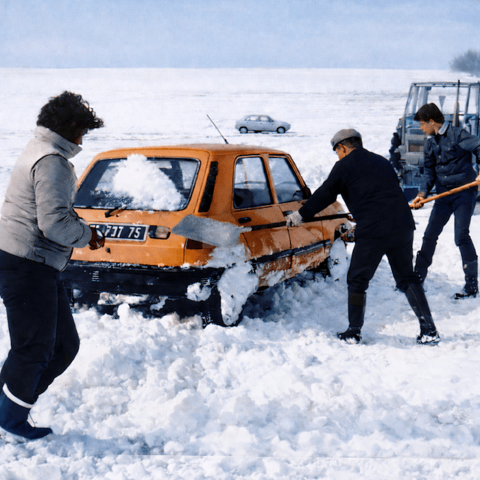 Mi-février 1986 : Les agriculteurs viennent au secours des automobilistes piégés par la neige dans la Beauce - photo meteo-paris.com