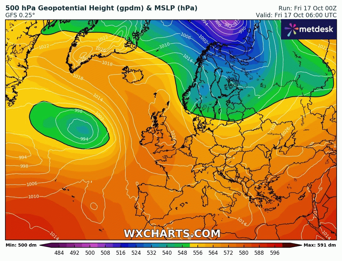 Évolution des géopotentiels sur l'Europe du 17 au 24 octobre 2025 – Modèle GFS via WX CHARTS