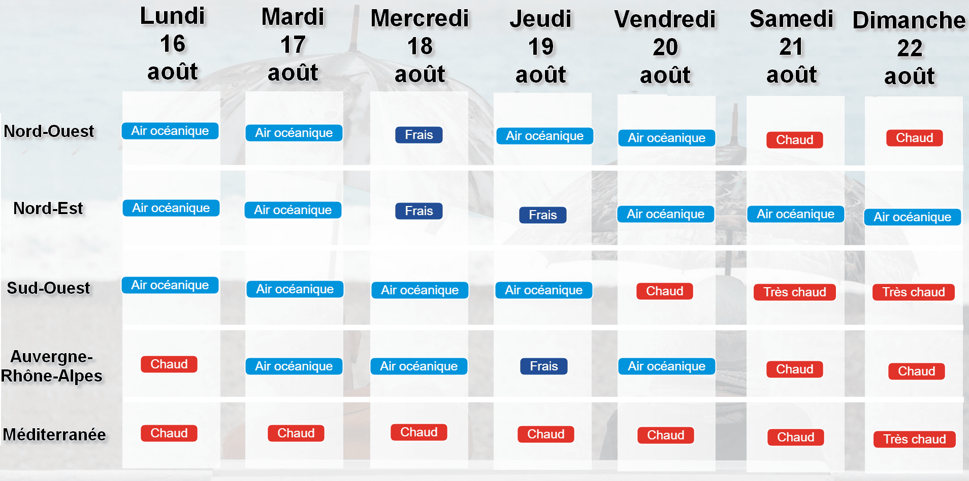 Semaine du 16 au 22 août : Changement de régime sur la France