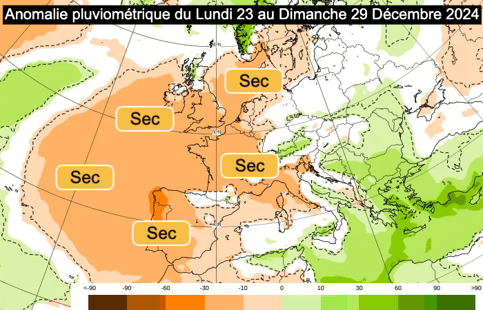 Anomalie pluviométrique du lundi 23 au dimanche 29 décembre 2024 - ECWMF