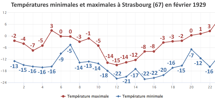 Températures minimales et maximales mesurées à Strasbourg (67) en février 1929 - infoclimat.fr