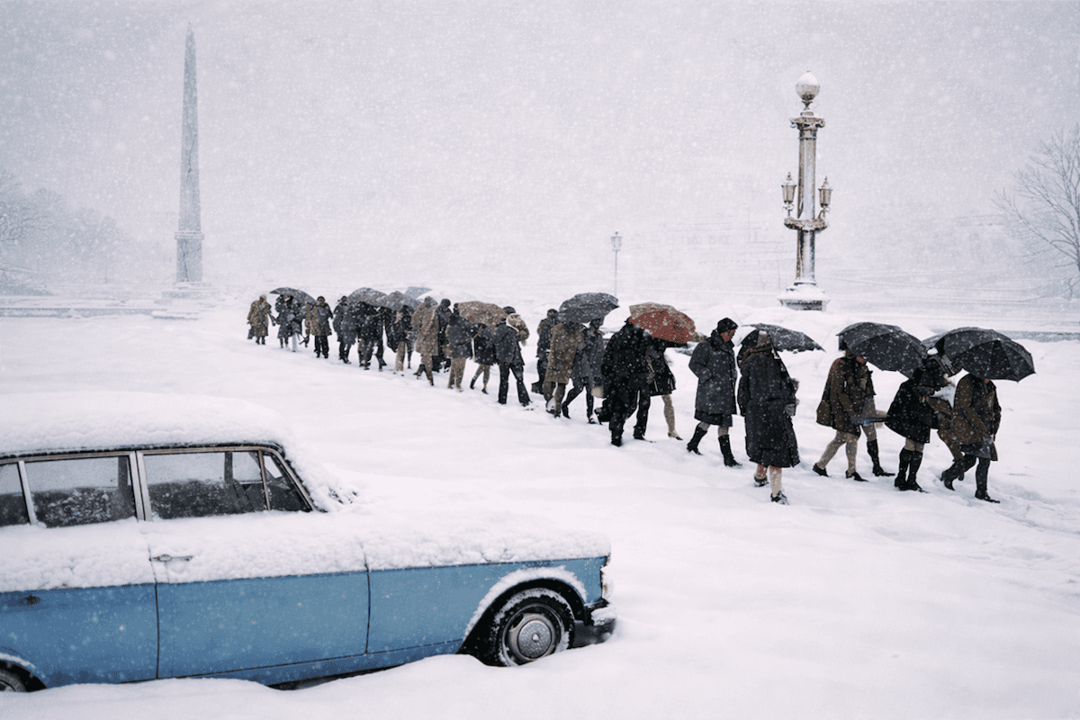 La place de la Concorde (Paris) paralysée lors de la tempête de neige du 4 mars 1970, à la sortie des bureaux - Chronique Météo Villes