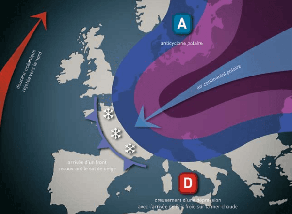 Schéma d'une vague de froid optimale en France - Issu de mon livre "MeteoExtrême"
