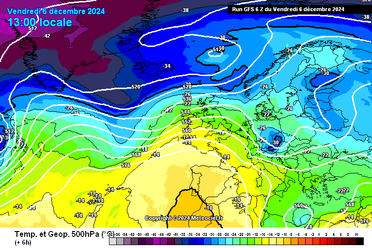 A haute altitude, 5500m, la température n'est que moyennement influencée par son trajet, et une masse d'air à -40°C arrivera à -35°C en France.