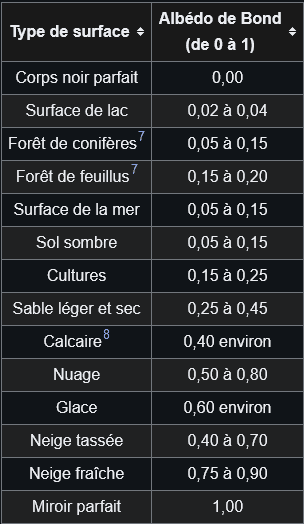 Albédo selon les surfaces - Wikipedia