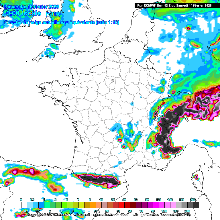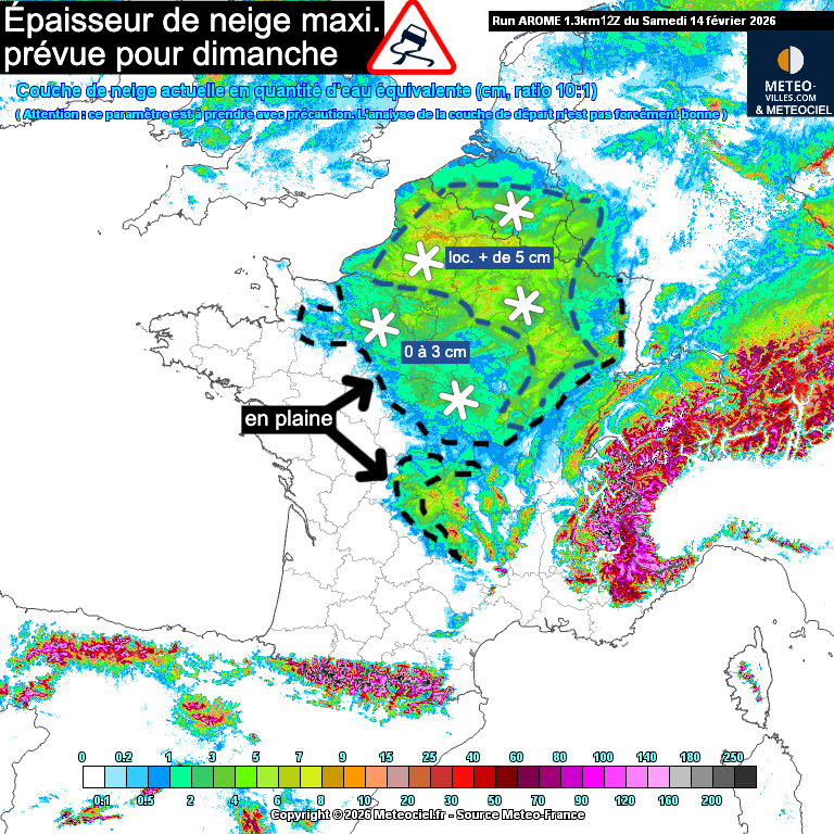 Épaisseurs de neige maximales prévue pour le dimanche 15 février 2026 – Météo-Villes