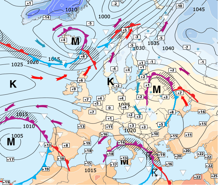 + En arrivant au-dessus de la Méditerranée l’air froid provoquera de l’instabilité avec des précipitations parfois fortes dans le Sud-est.