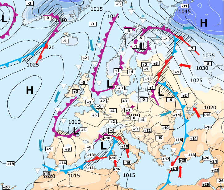 Noms des dépressions et anticyclones prévus pour samedi 2 janvier 2021 à midi (Berlin)