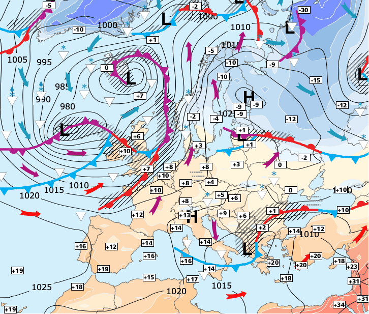 + Un classique courant océanique de plus en plus perturbé est en train de se mettre en place (expliqué dans notre article >>>) car un vaste et profond système dépressionnaire s'impose sur le nord de l’Atlantique.