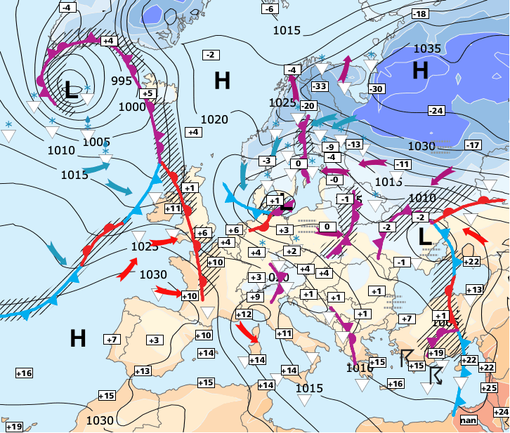 + Cette énième incursion froide sera éphémère MAIS la perturbation océanique qui arrivera par le Nord-ouest samedi sera précédée de neige entre Lille, Rouen Paris, Orléans, Limoges, puis vers la Champagne.