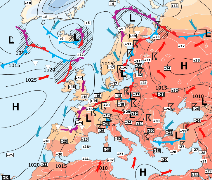 + A priori, le temps redeviendra chaud et ensoleillé sur l'ensemble de la France le week-end prochain (même si les scénarios divergent fortement en ce qui concerne les régions du Nord-ouest où le retour d'un régime océanique plus humide est temporairement possible).