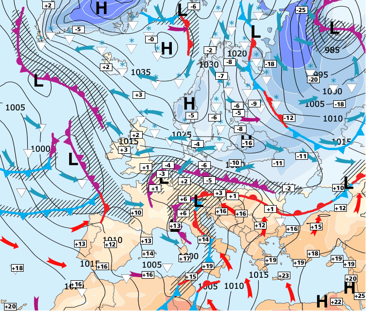 + L’imposante masse d’air très froid en provenance de Russie qui influence désormais toute l’Europe du Nord envahit également la partie Nord de la France.